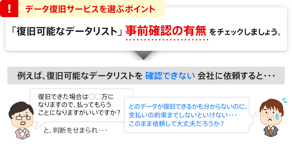 過大な復旧成功率を掲げる等、お客様を困惑させるような行為はいたしません